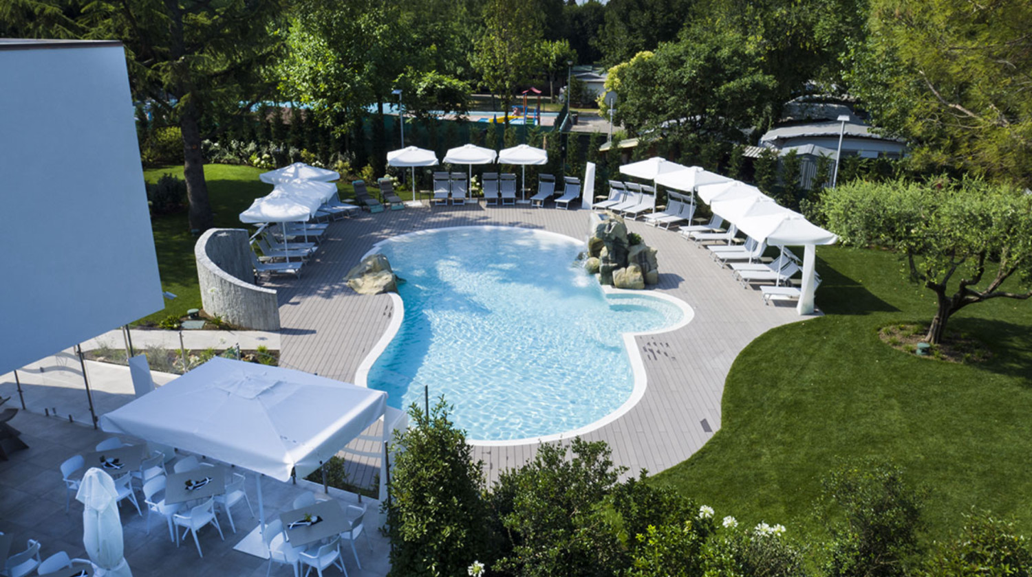In the outdoor heated swimming pool of the Relais Villa Clodia, you will be greeted by Alo-free water, with no trace of chlorine or bromine. You will find the purity of oxygen instead, which respects the well-being of the environment as well as the most sensitive skins.