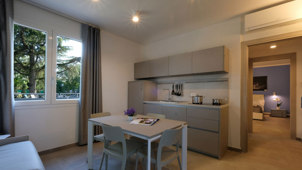 Accommodating up to four people, it has a living area and a kitchen fitted with an induction hob and state-of-the-art electrical appliances, double sofa bed, spacious bathroom and double bedroom with another sofa bed for two people.